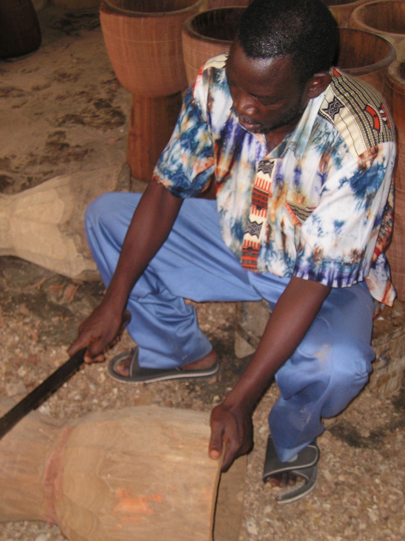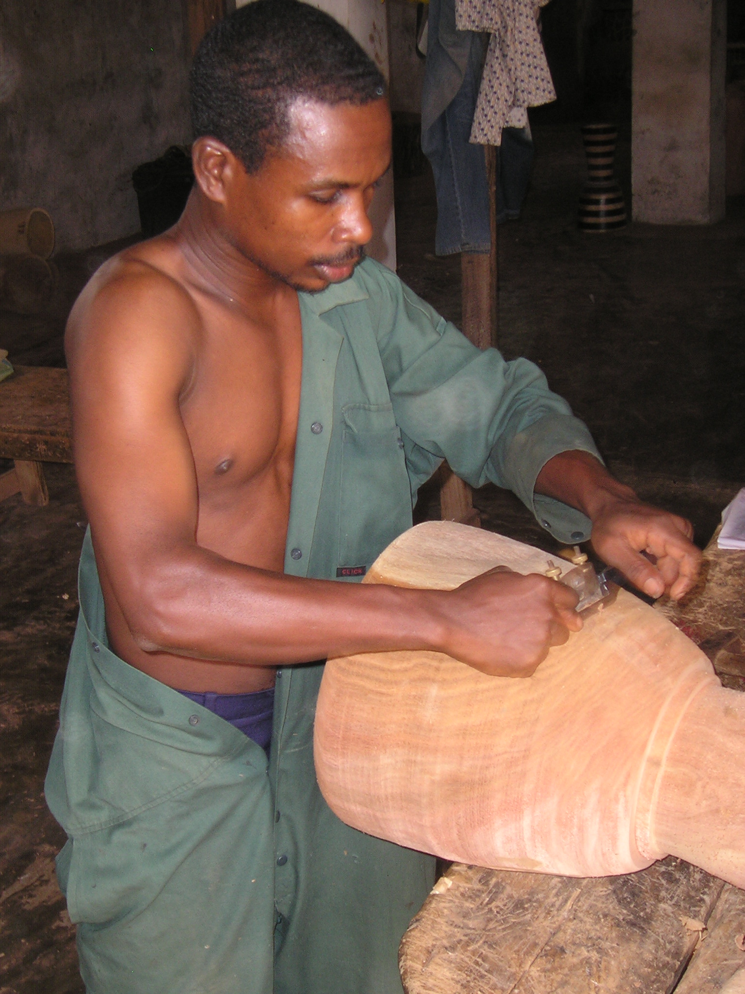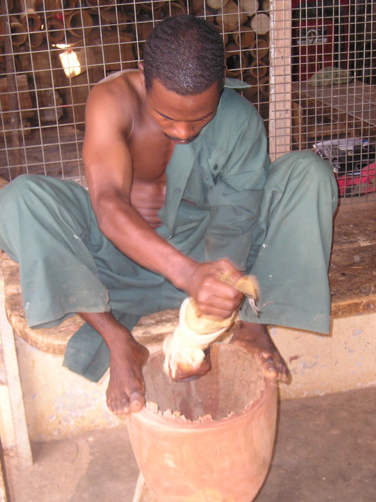 In the following photos you can see the skilled instrument makers who supply many of the instruments we use. You can follow the process of creating a Djembe from raw materials and see how the Xylophone is constructed.