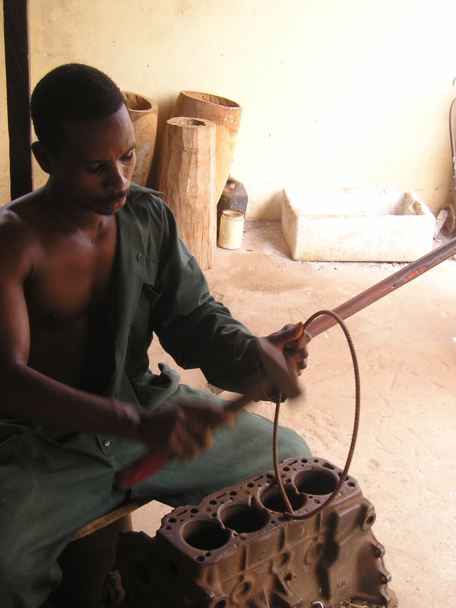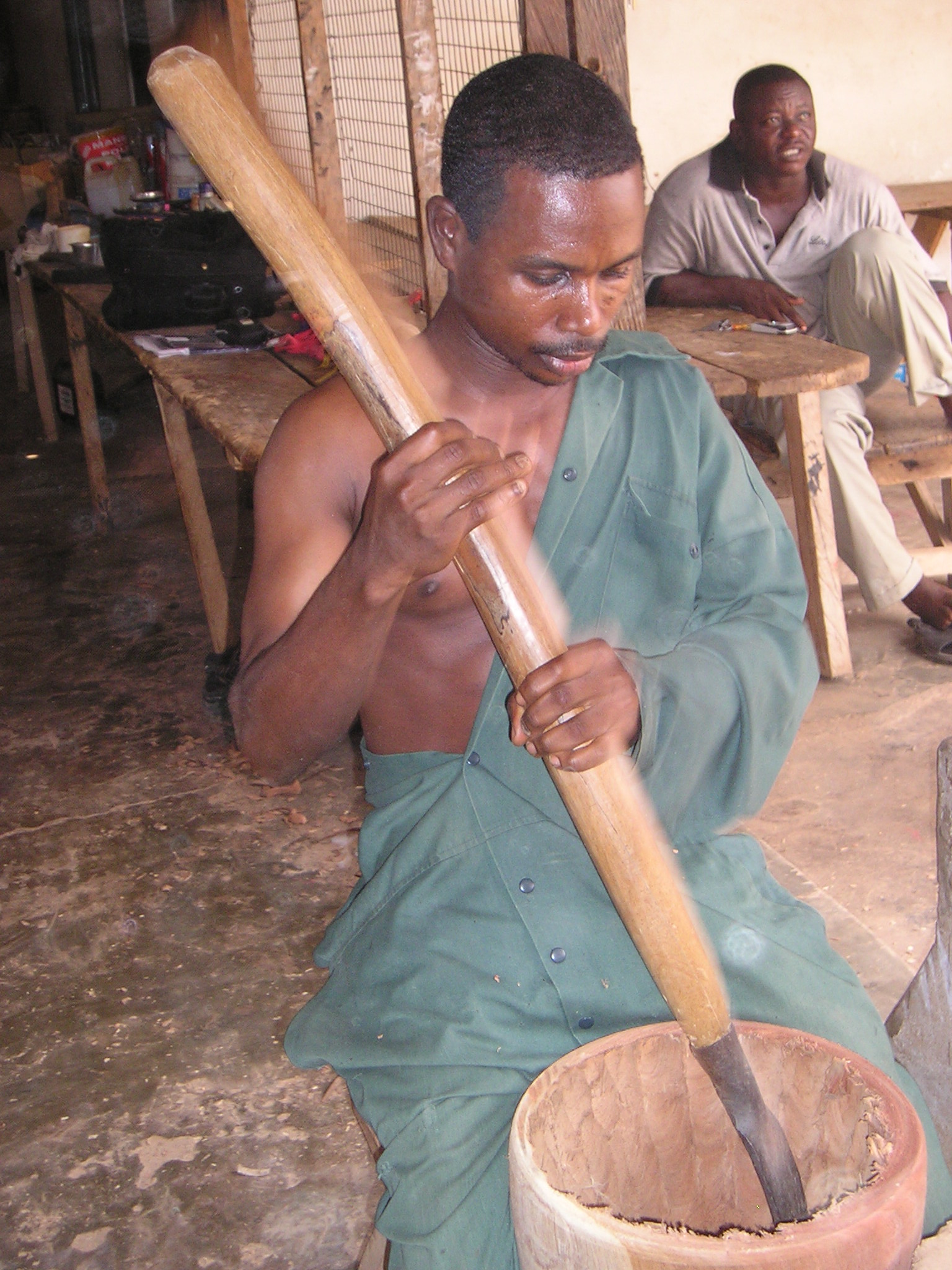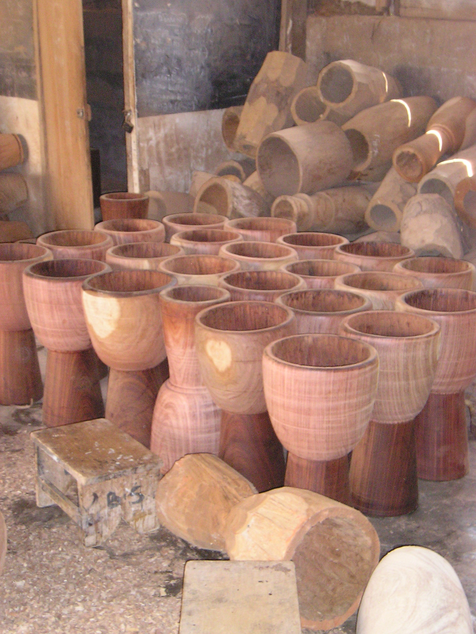 In the following photos you can see the skilled instrument makers who supply many of the instruments we use. You can follow the process of creating a Djembe from raw materials and see how the Xylophone is constructed.